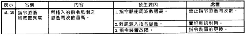 MR-J2S-100B會顯示 AL.35是由於指令脈衝頻率誤差(Command pulse frequency error)所造成的