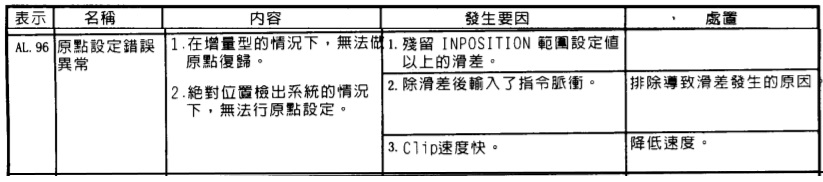 MR-J2S-100B-EE085會顯示 AL.96是由於原點設定異常(Home position setting warning)所造成的