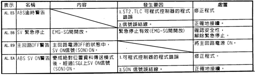 品名: MR-J2S系列異常碼