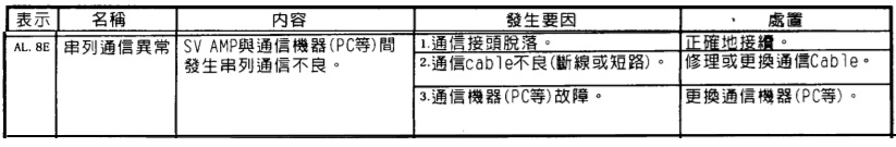 MR-J2S-100B-S141U632會顯示 AL.8E是由於串行通訊錯誤(Serial communication error)所造成的