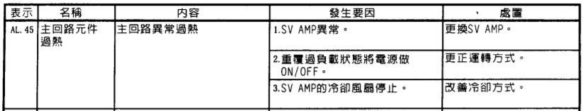 MR-J2S-100CP會顯示 AL.45是由於主電路裝置過熱(Main circuit device overheat)所造成的