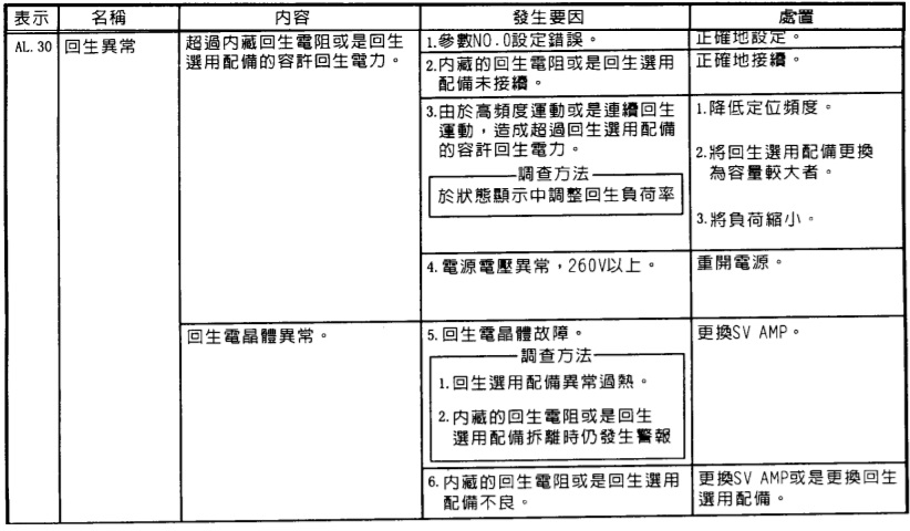 MR-J2S-100CP-EG會顯示 AL.30是由於回生異常(Regenerative error)所造成的