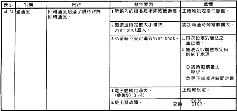 MR-J2S-10B-T004會顯示 AL.31是由於過速度(Overspeed)所造成的